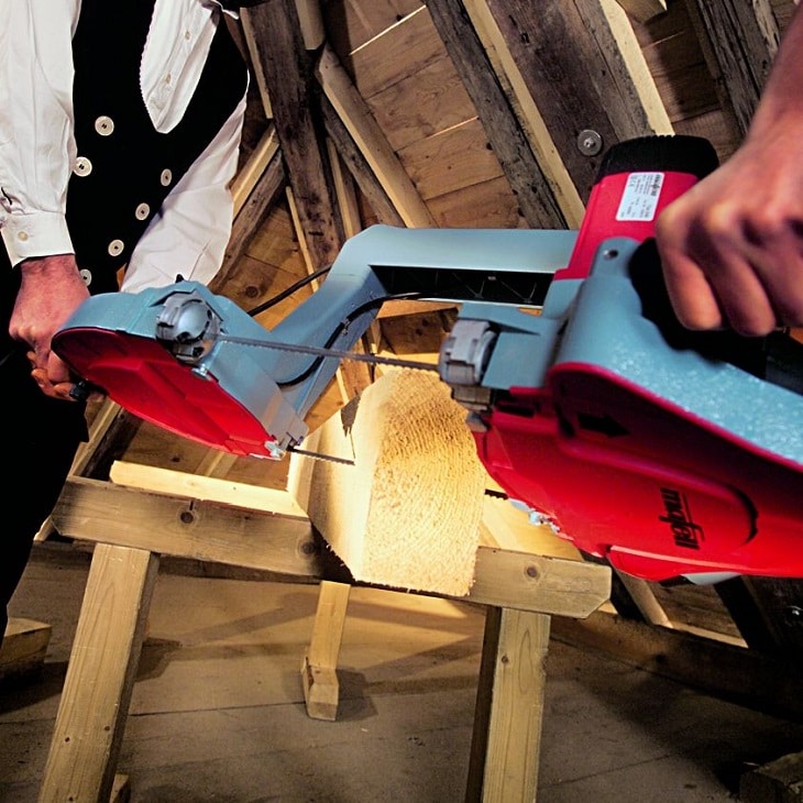 La scie à ruban sert à travailler le bois. Sur le marché, il en existe de type fixe et de type portatif.  Elle est indispensable pour tout professionnel travaillant de grands volumes de bois et permet de réaliser les travaux de délignage et de chantournage avec une précision inégalable. Idéal, par exemple, pour la construction d’une terrasse en bois.
