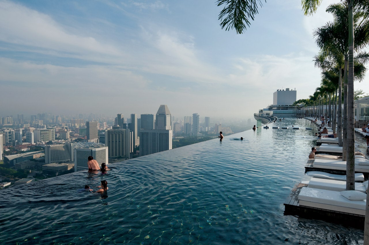 Alors je ne sais pas vous, mais moi j’adore voyager, je n’ai malheureusement pas eu l’occasion de faire un séjour dans cet hôtel, mais sa piscine est la plus impressionnante que j’ai jamais vue ! Il s’agit de la piscine à débordement du Marina Bay Sands de Singapour. Le bassin fait 150m de long ! et 12400 m² ! Pour pouvoir en profiter, comptez 237€ par nuit.